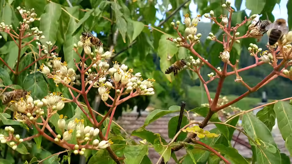 Im Spätsommer und Herbst finden unsere Honigbienen nur noch wenig Nektar, da die meisten Massentrachten bereits im Frühling und Frühsommer stattfinden. Genau für diese trachtarmen Zeiten sind Pflanzen, wie der Bienenbaum ideal.